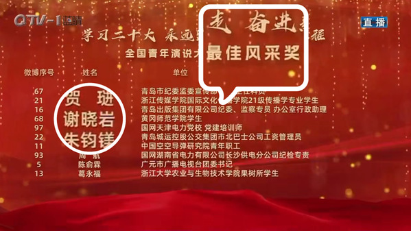 本网讯 用青春声音讴歌时代,让青春故事绽放光彩。5月3日下午,由共青团青岛市委、中国共青团杂志社共同举办的“学习二十大永远跟党走奋进新征程”全国青年演说大赛决赛在青岛广播电视台800平米演播大厅举行。我校学子谢晓岩在大赛中荣获三等奖、最佳风采奖。