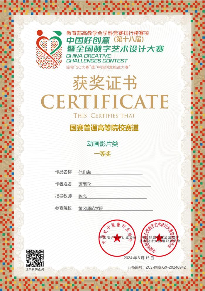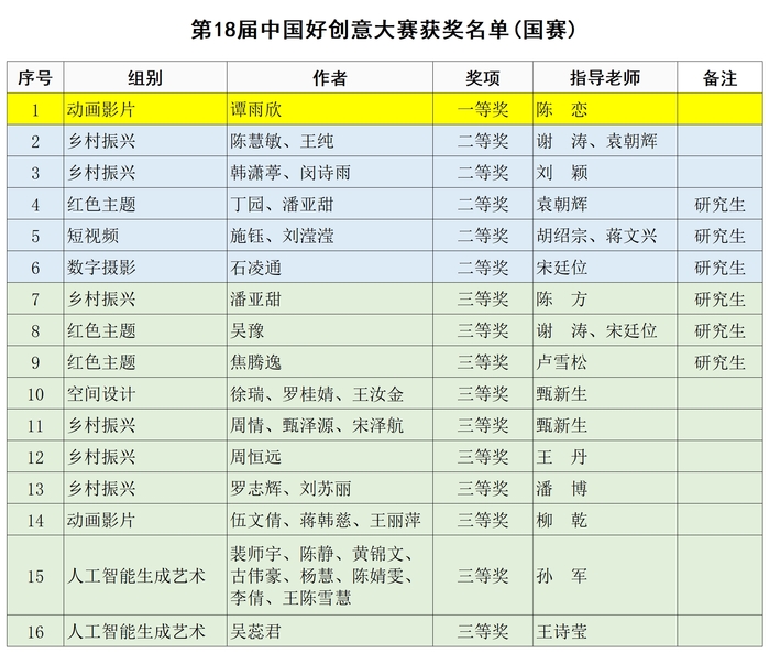 本网讯 近日,2024第18届中国好创意暨全国数字艺术设计大赛国赛获奖名单公布,我校美术学院最终获得全国总决赛国家级一等奖1项、二等奖5项、三等奖10项。