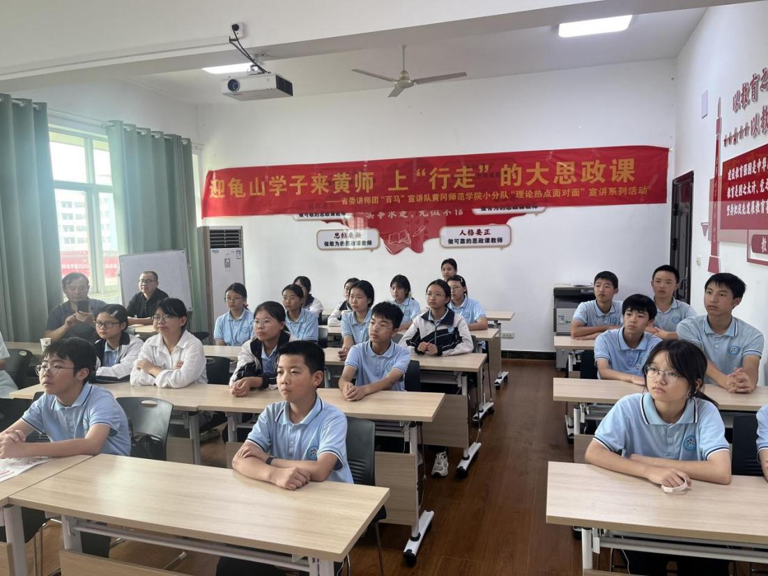 龟山镇中学生代表观摩了由我校等四所学校联讲的黄冈市大中小学思政课一体化“弘扬大别山精神”专题课,从丰富的课程内容中汲取信仰力量,读懂家国担当;参观了音乐学院、黄梅戏学院“一廊三馆”,现场观看经典黄梅戏《女驸马》选段表演,近距离领略传统戏曲的独特魅力;在马克思主义学院VR思政教室,通过沉浸式情景课程《中国梦的本质是国家富强、民族振兴、人民幸福》的学习,理解国家发展蓝图的内涵;在大别山红色文化实习实训基地,全面了解大别山28年红旗不倒的革命历史,领悟大别山精神的内涵;在大别山农耕文化博物馆,通过体验耕具感受农耕文明智慧与底蕴,增进对中华优秀传统文化的认同与自豪。
